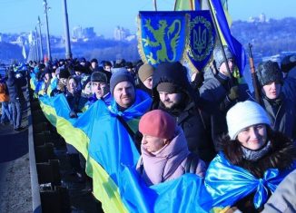 В Киеве на мосту Патона утром 22 января, в День Соборности Украины, активисты образовали "живую цепь", которая символизирует единство нашей страны.