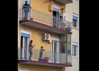 В сеть попало видео, снятое в городе Казория близ Неаполя. Итальянцы, вынужденные сидеть по домам на карантине, выходят на балконы многоэтажек. Они вместе поют жизнеутверждаюшие песни и скандируют...