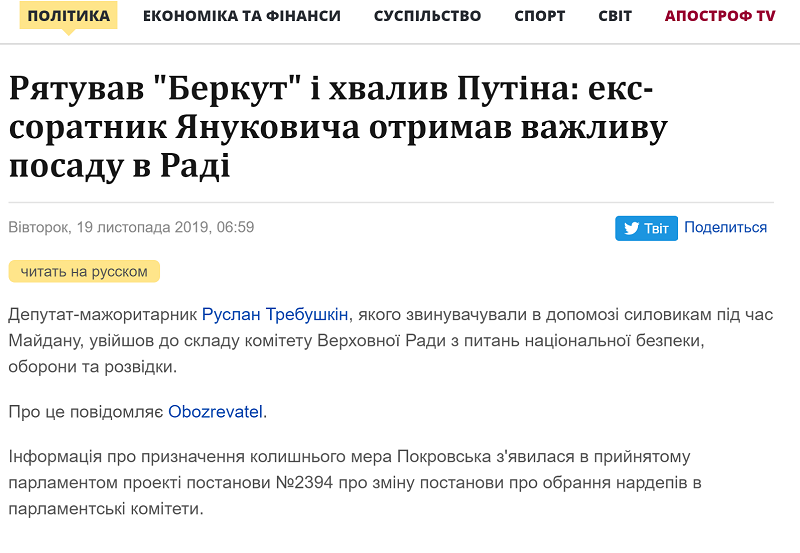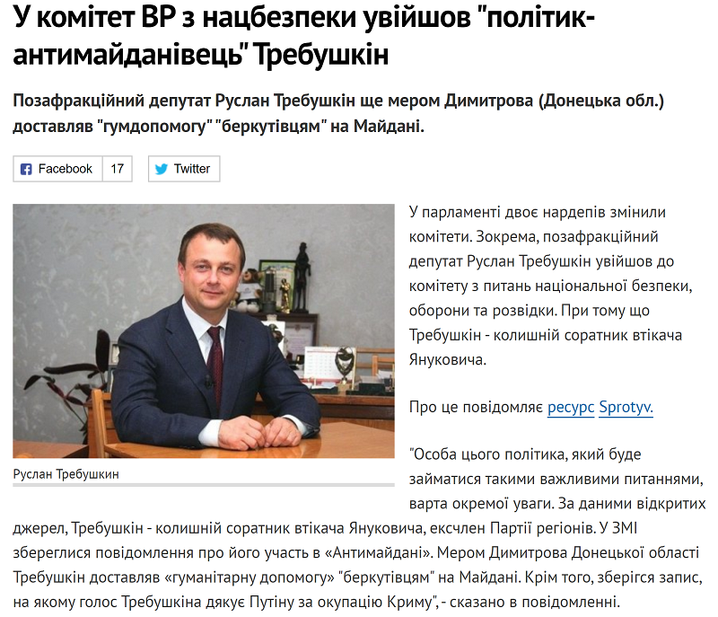 Якщо їм наплювати на сотні публікацій про нардепа Требушкіна, якого неодноразово чимало українських ЗМІ називають сеператистом, любителем руского міра, прихильником Путіна, і т. д. – то пора хоча б задуматись над тим що він прямо хоче віджати народні багатства держави!