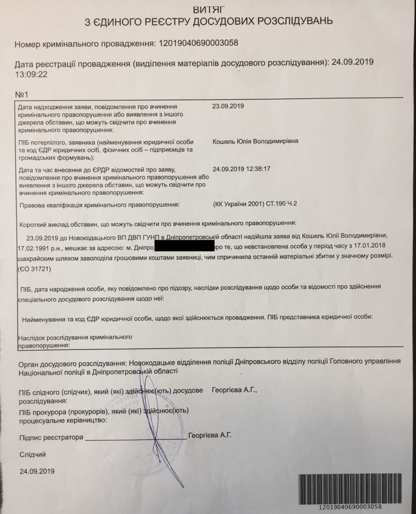 Несмотря на то, что в ходе расследования потерпевшей компанией ООО “Сан Энерджи” (директор Юлия Кошель) удалось открыть уголовные дела против Гамлета и Нарека Тунянов по статьям “мошенничество” и “подделка документов”, они пошли на новое преступление и подкупили судью Винницкого апелляционного суда Марию Матковскую (суддя Вінницького апеляцийного суду Марія Матківська).
