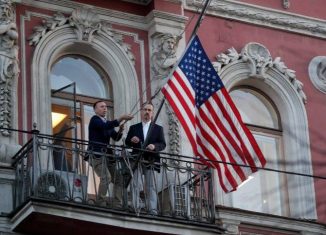 На фото сотрудники консульства в Санкт-Петербурге снимают флаг своей страны. Консульство работало с 1972 года!