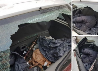 Российские пользователи социальных сетей рассказали о примечательном случае в Санкт-Петербурге, где местному стороннику боевиков оккупированного Донбасса разбили заднее стекло автомобиля из-за флага "Новороссии".