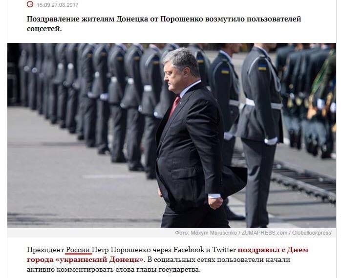Так, украинского лидера протитровали президентом России. Хотя пропагандисты быстро исправили свою ошибку, ее успели заметить внимательные читатели.