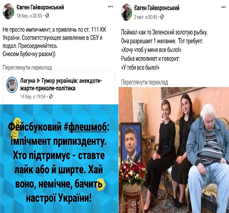 «Шановний Іване Геннадійовичу! Просимо Вас провести розслідування щодо Євгена Гайворонського. Адже згідно фактів у відкритих джерелах дана особа брала активну участь в анексії Криму, що згідно чинного Законодавства є порушенням 110 та 111 статей ККУ. Також є підставим вважати, що Гайворонський може бути завербованим агентом ФСБ заради проведення в Україні дестабілізації соціально-політичного життя, а також його метою може бути підбурювання і організація державного перевороту. Просимо негайно прийняти всі міри та вберегти державу від кривавого зовнішнього впливу що в вчасності може здійснюватися через Гайворонського Євгена. Чекаємо рішучих дій!».