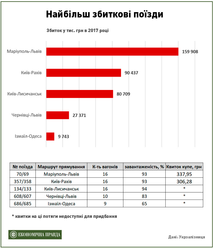 Найприбутковішим був потяг Київ-Москва, що приніс «Укрзалізниці» 154,5 млн гривень.