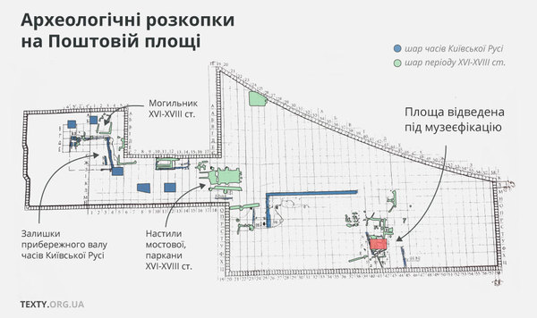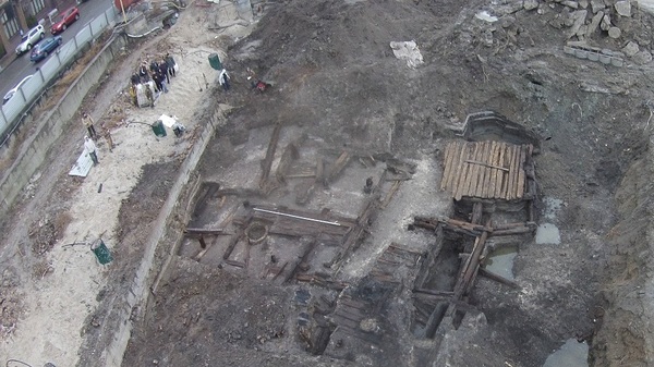 На початку 2015 року київським археологам пощастило. Під час будівництва підземного торговельного центру на Поштовій площі їм вдалося вихопити з-під ковша кілька стародавніх дубових колод. Знахідки стали науковою сенсацією, яка дещо змінила уявлення вчених про середньовічний Поділ.