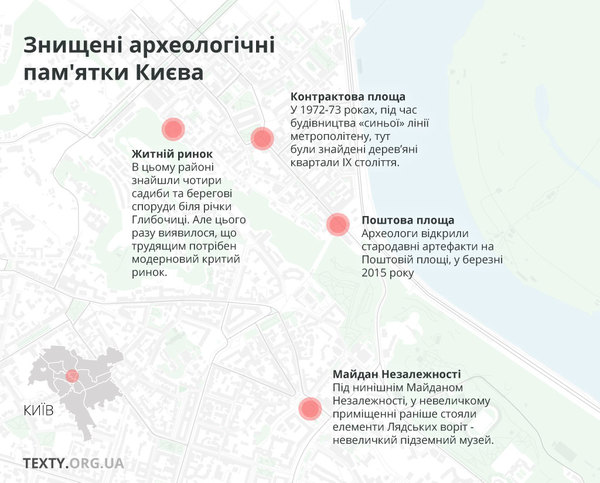 Але партія вирішила, що метро для «радянських трудящих» важливіше за музей. Щоправда, стародавні квартали простягалися і на ті ділянки, де не було метробуду. В районі Житнього ринку знайшли чотири садиби та берегові споруди біля річки Глибочиці. Але цього разу виявилося, що трудящим потрібен модерновий критий ринок.
