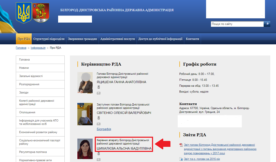 Третьим фигурантом входящим в преступную банду по разворовыванию благотворительных средств и крышиванию руководителя Одесского Красного Креста Жарикова Евгения входит руководитель аппарата Белгород-Днестровской районной государственной администрации – Шихалиева Алена Ибадуллиевна.