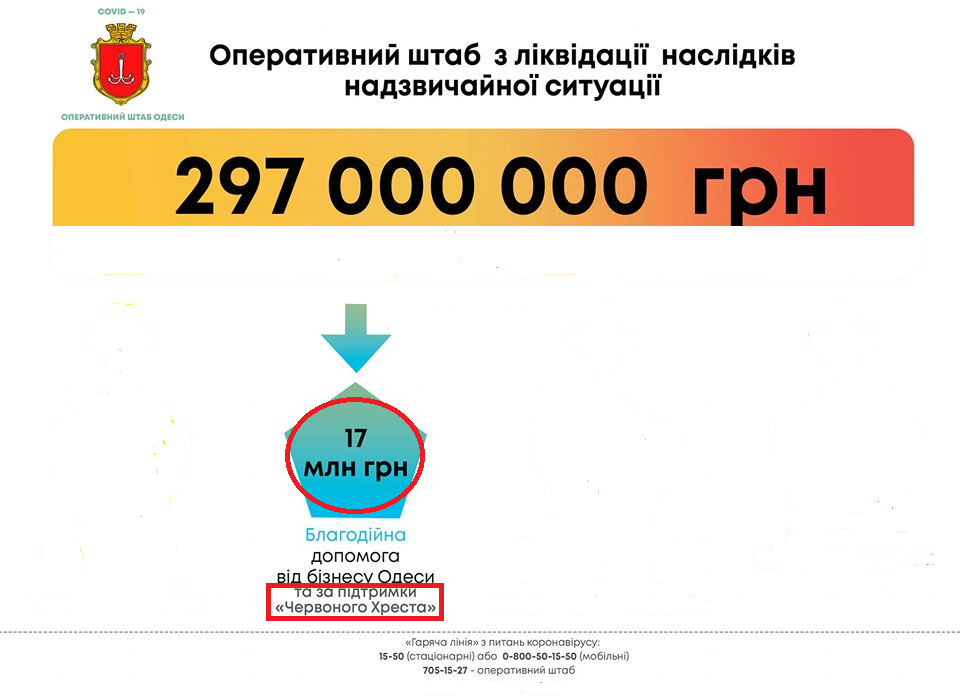 Сначала появления короновируса в нашей стране все ощутили определенные ограничения, а Одесские махинаторы из Красного Креста в это время быстро организовали свою преступную группу и запустили процесс по личному обогащению. По состоянию на 01 мая 2020 года для Одесского Общества Красного Креста наивные граждане и «нагнутый» бизнес Одессы при содействии современной власти перевел более 17 000 000 миллионов гривень в счет-ловушку псевдоблаготворителей – коррупционеров из Красного Креста!